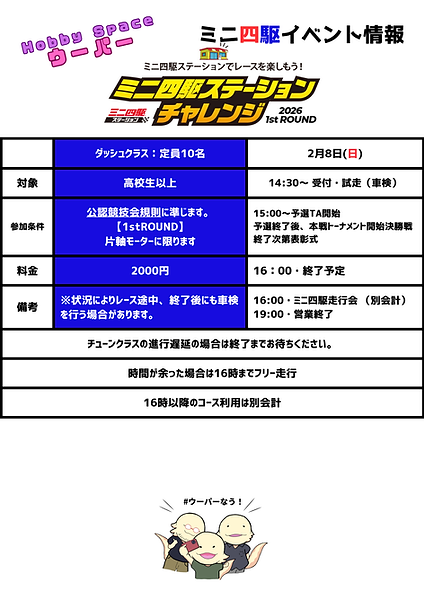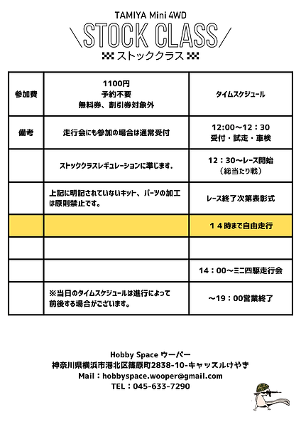 ミニ四駆”ストッククラス”レース開催のお知らせ